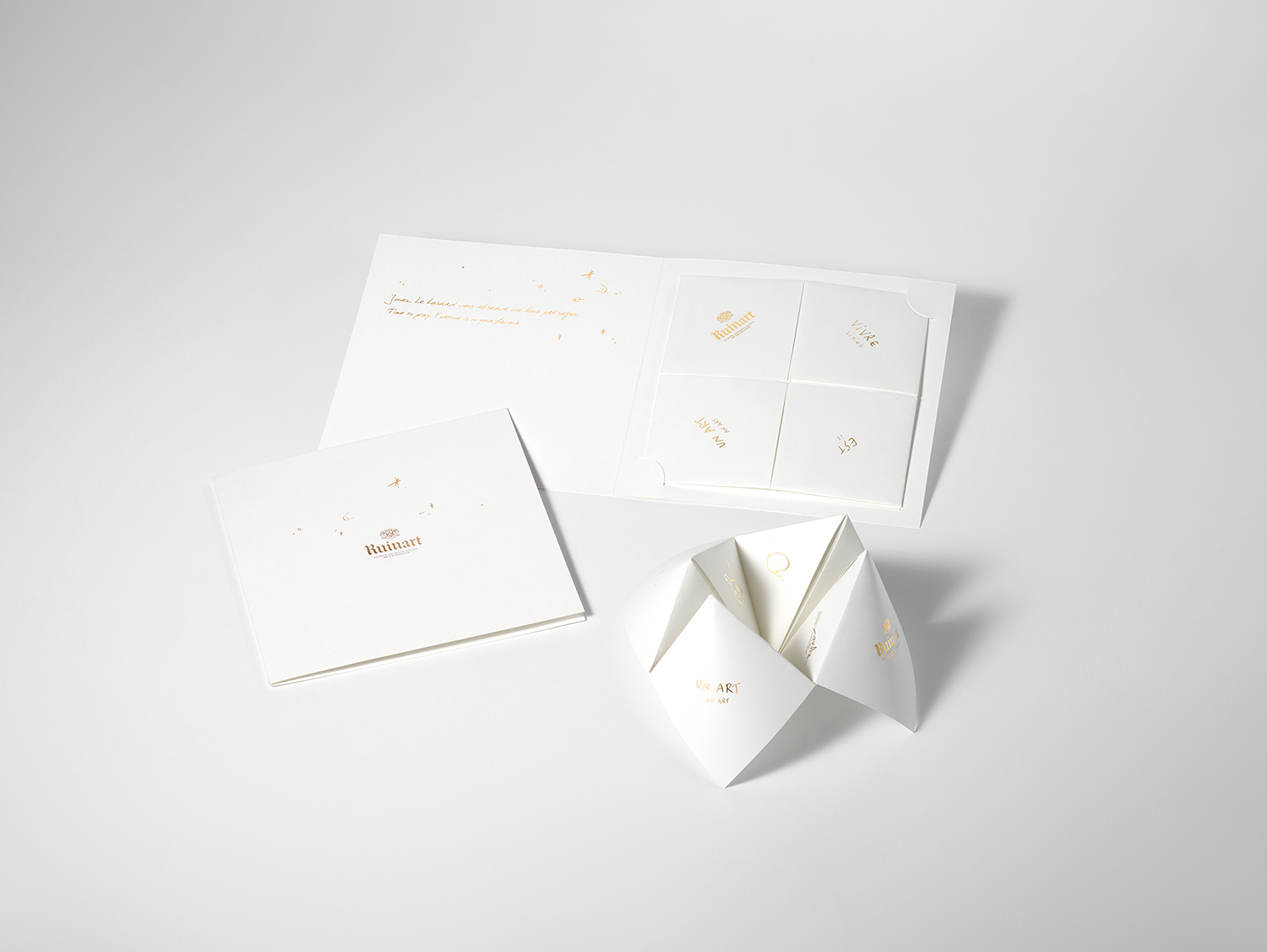 Creation of a paper cocotte illustrated by Serge Bloch for Ruinart's greeting card.