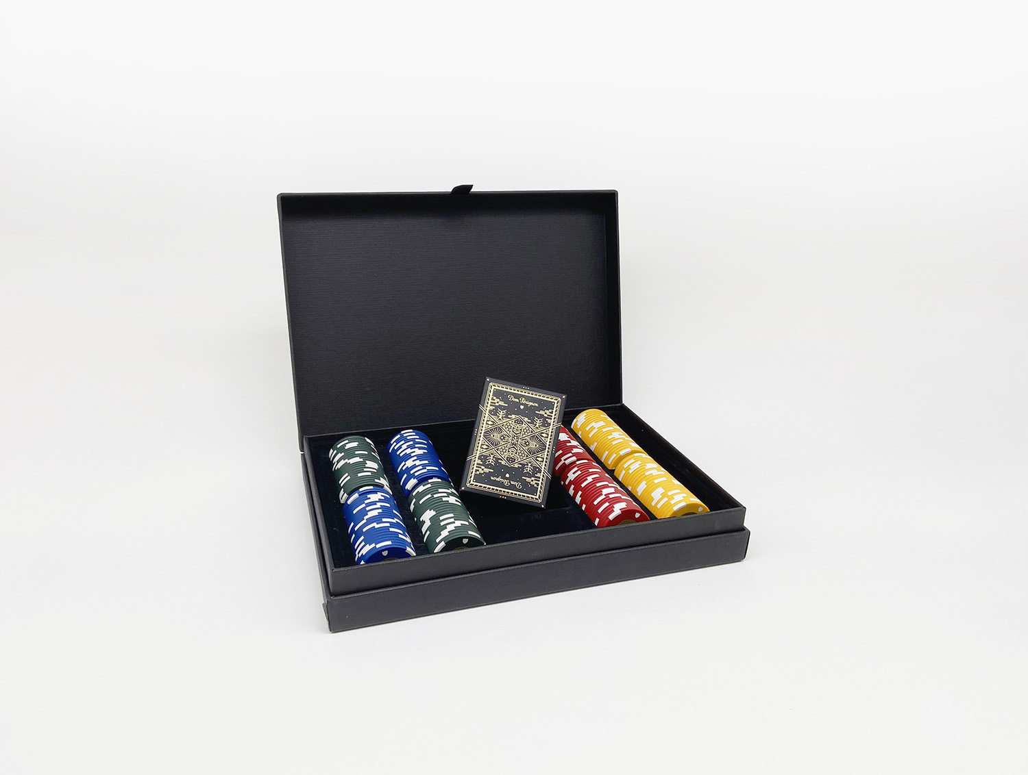 Poker game for Dom Pérignon illustrated by Benoit Berger, included in the case containing the poker chips.