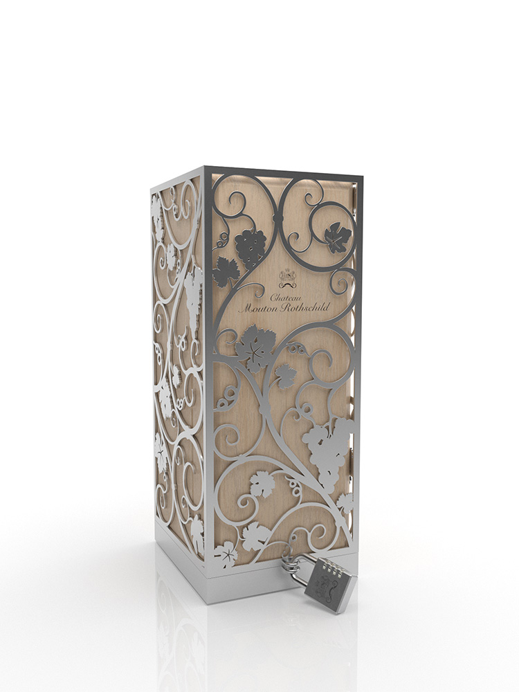 Creation of the mechanics and design of the Château Mouton Rothschild prestige box, sealed with a code revealed at a specific time to reveal the label created by Gérard Garouste.