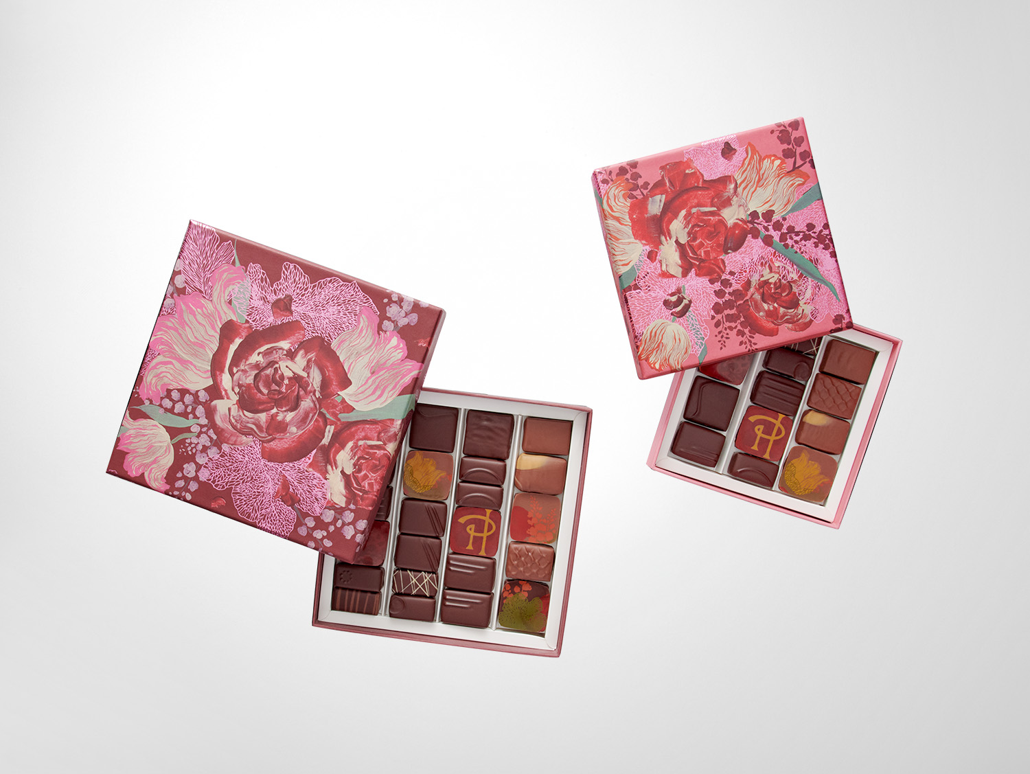 Graphic design for Valentine's Day offerings illustrated by Yukiko Noritake for Pierre Hermé.