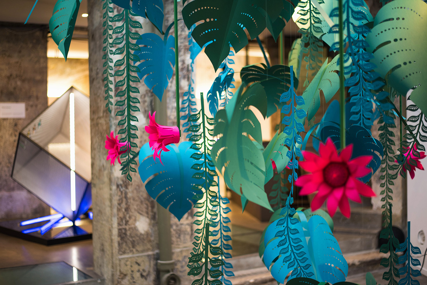 Our olfactory discovery journey consisted of four contemporary installations, including one in art paper by Giselle Balosso-Bardin, illustrating the four main families of AromaFusion accords. Visitors were free to move around the space and discover these scents.