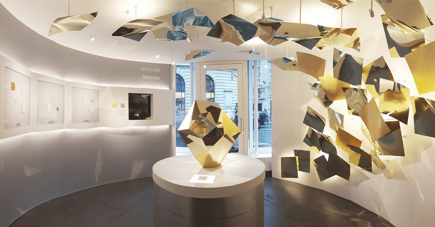 We transformed their Le Lab showroom with a canopy of gold leaves identical to those used for gilding. In the center, a large nugget conceals an ART switch. The mise en abîme created by the play of mirrors allows the device to multiply infinitely, expressing both the exceptional nature of the object and the scale of the manufacturer.