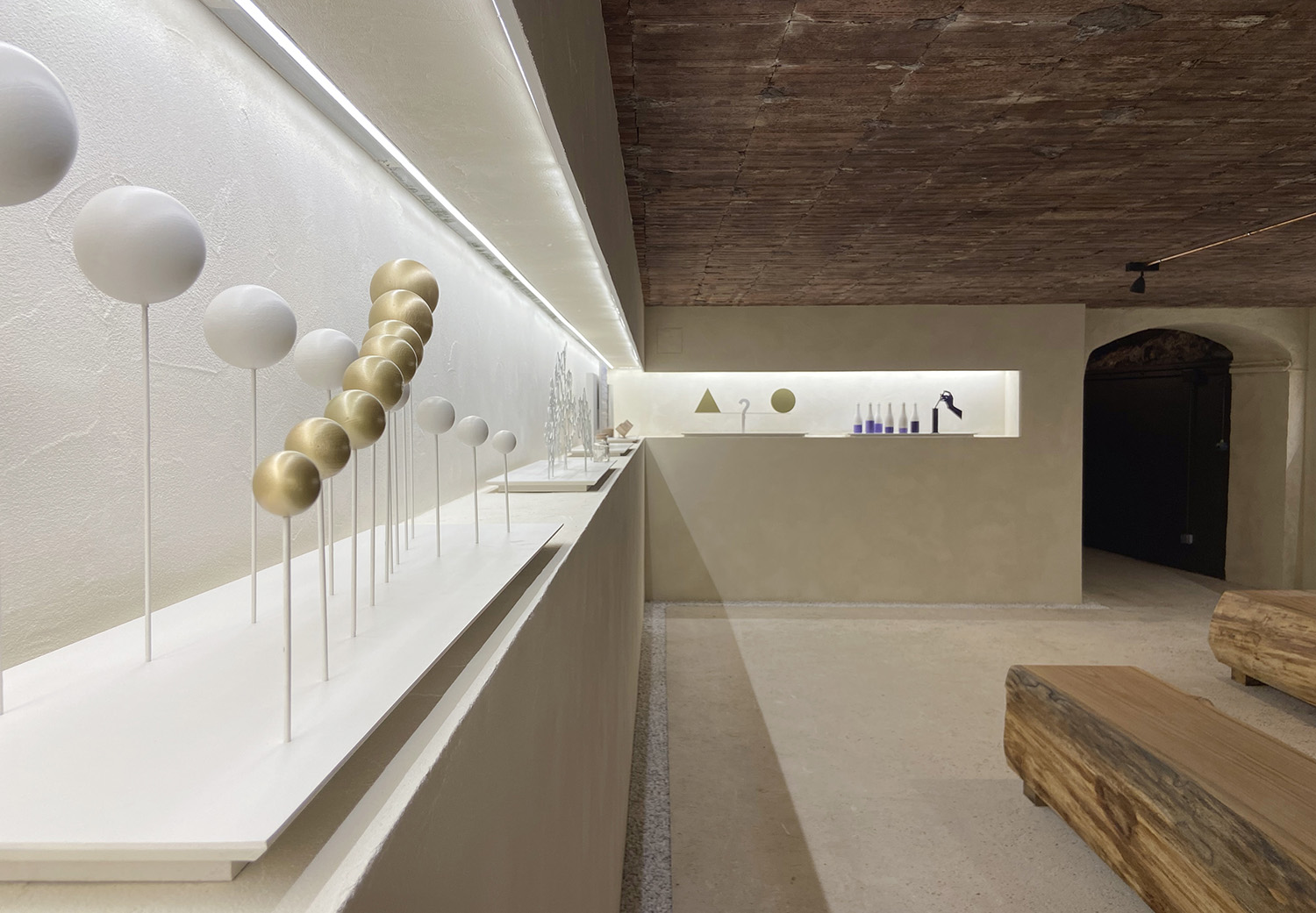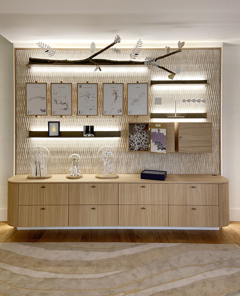 We customized furniture to showcase educational content, supporting the brand ambassador's verbal explanations during tours. In the second cellar, visitors learn the secrets of how Lallier Champagne is made. Seven contemporary installations illustrate, for example, selection, parcel-by-parcel vinification, malolactic fermentation, house yeasts, aging, and blending.