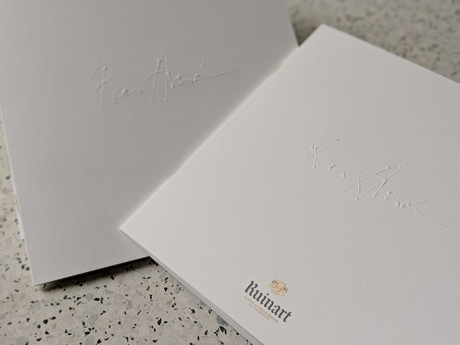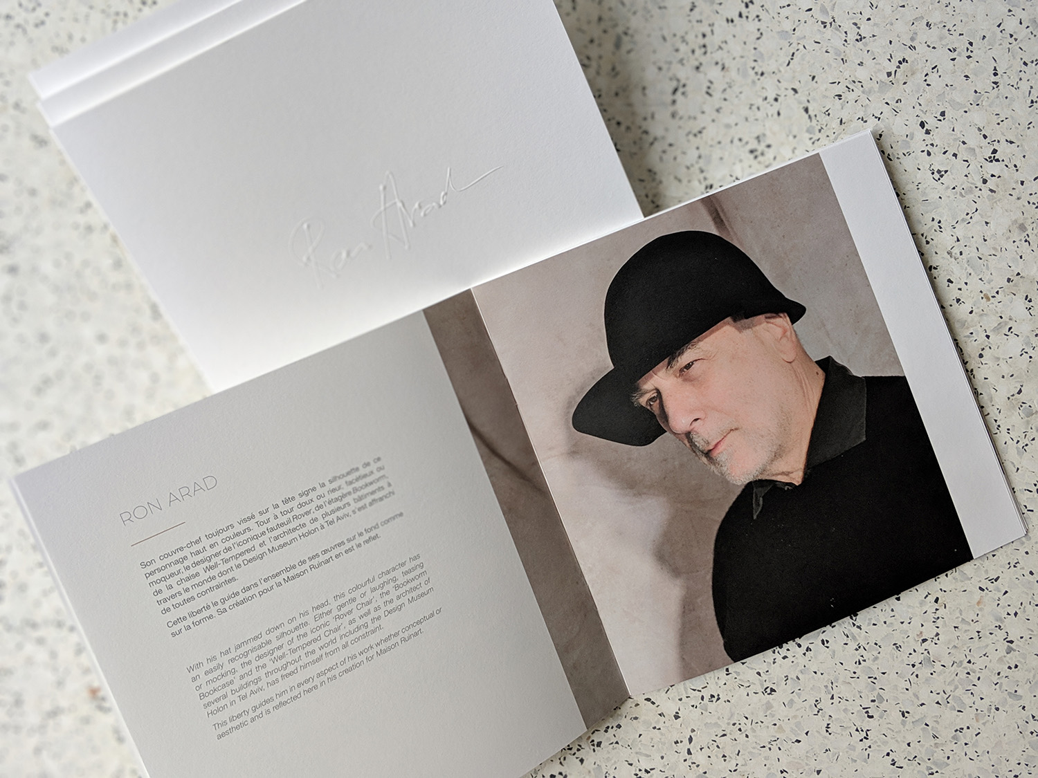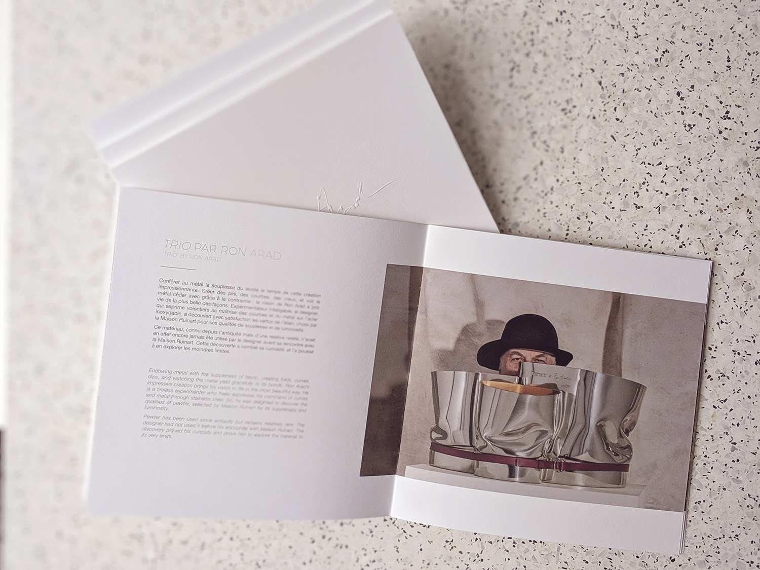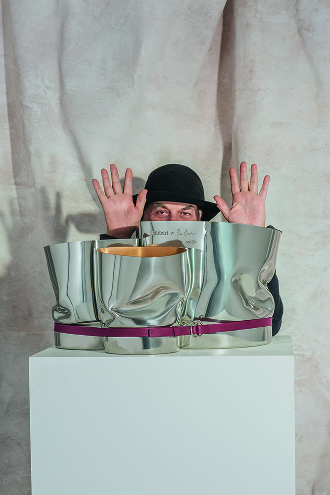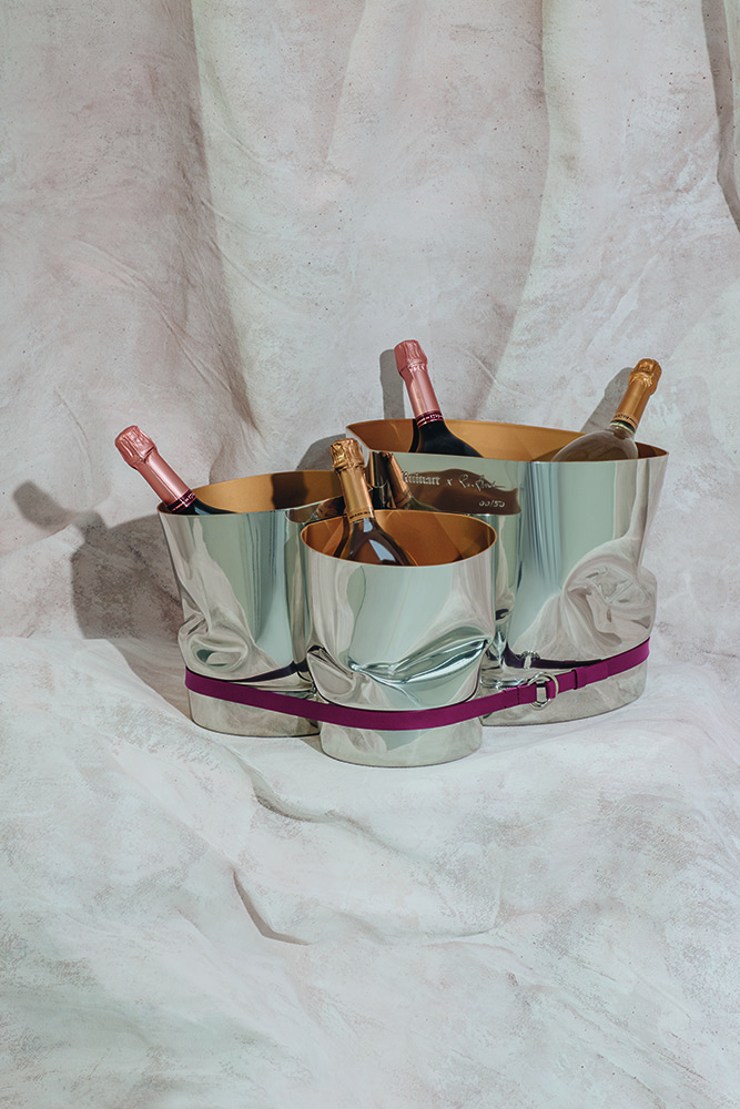 Set design and photo shoot for the prestigious collection of Champagne buckets designed by Ron Arad. These photos illustrated the booklet included in the trunk containing the item, sold exclusively at Maison Ruinart in Reims. The booklet was created by our studio, Costume III Pièces.