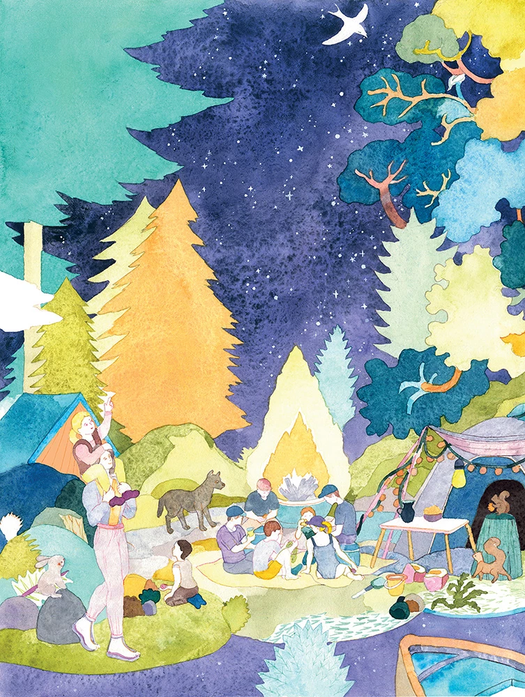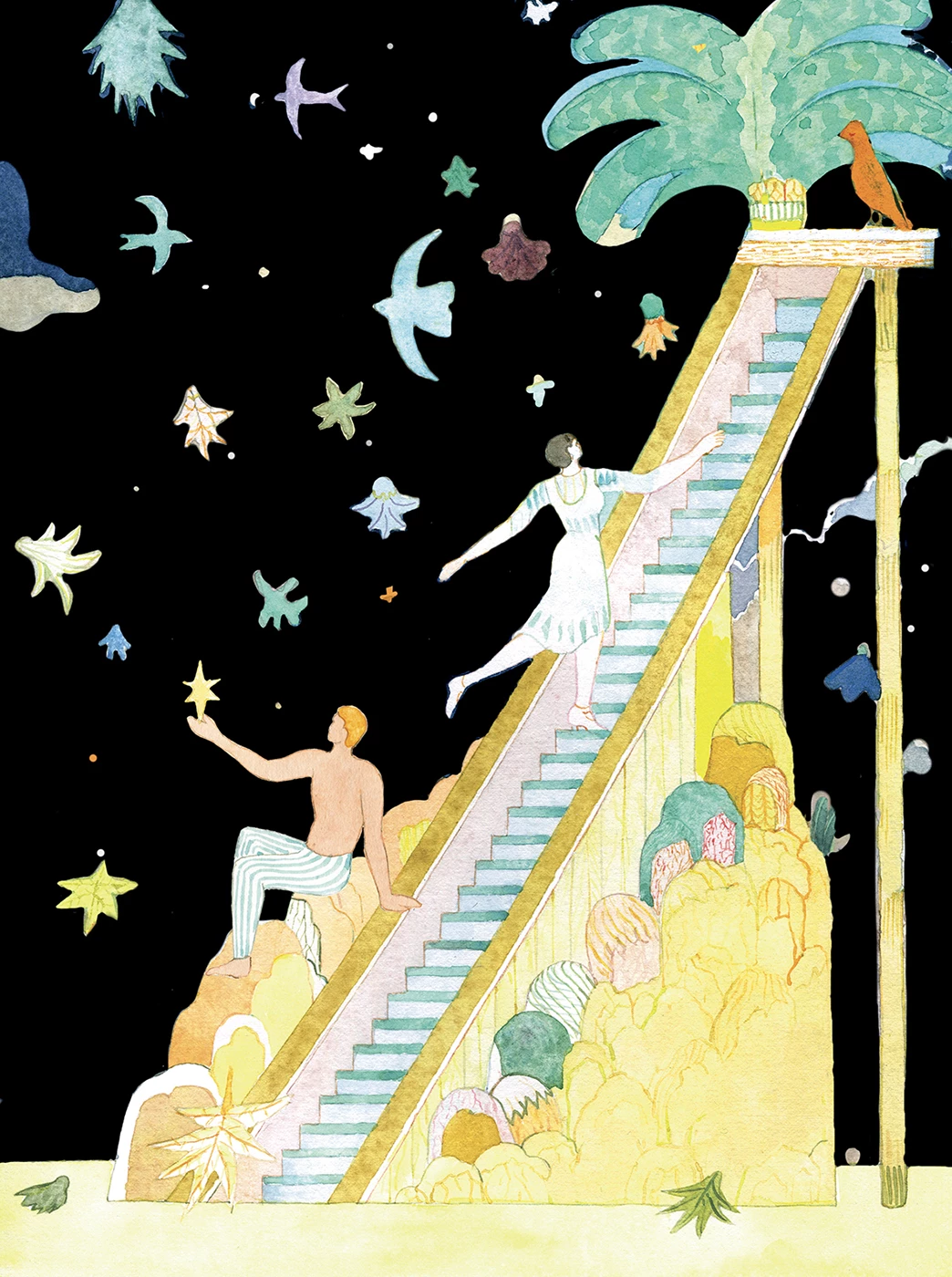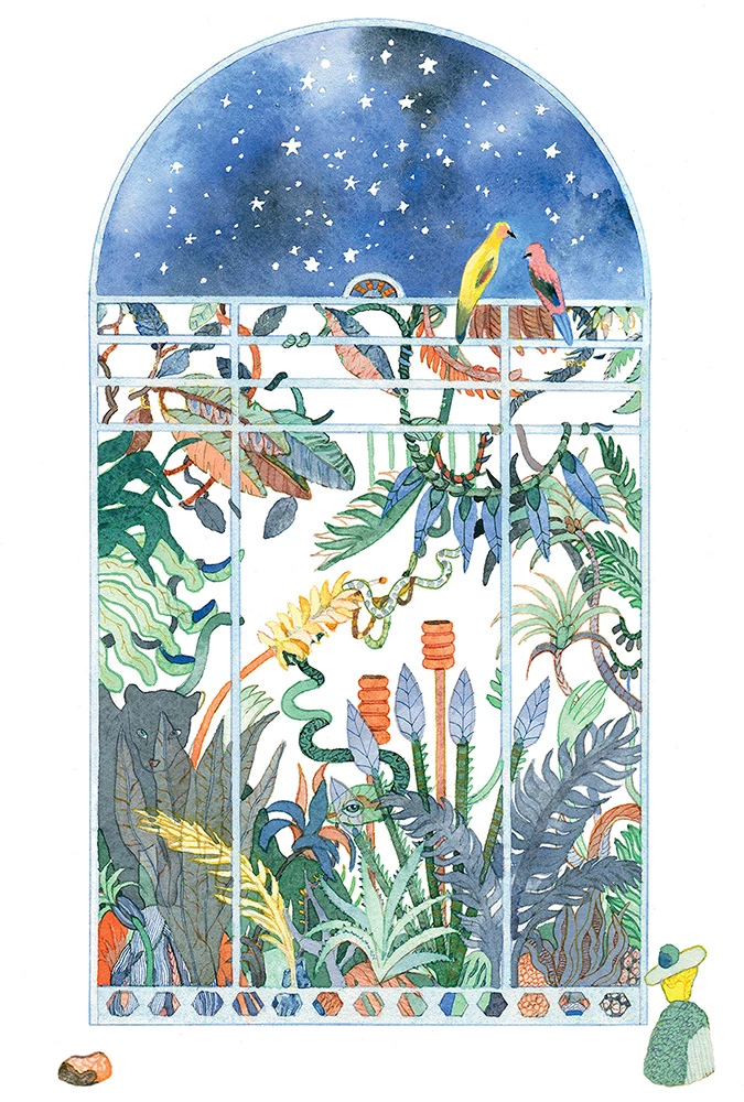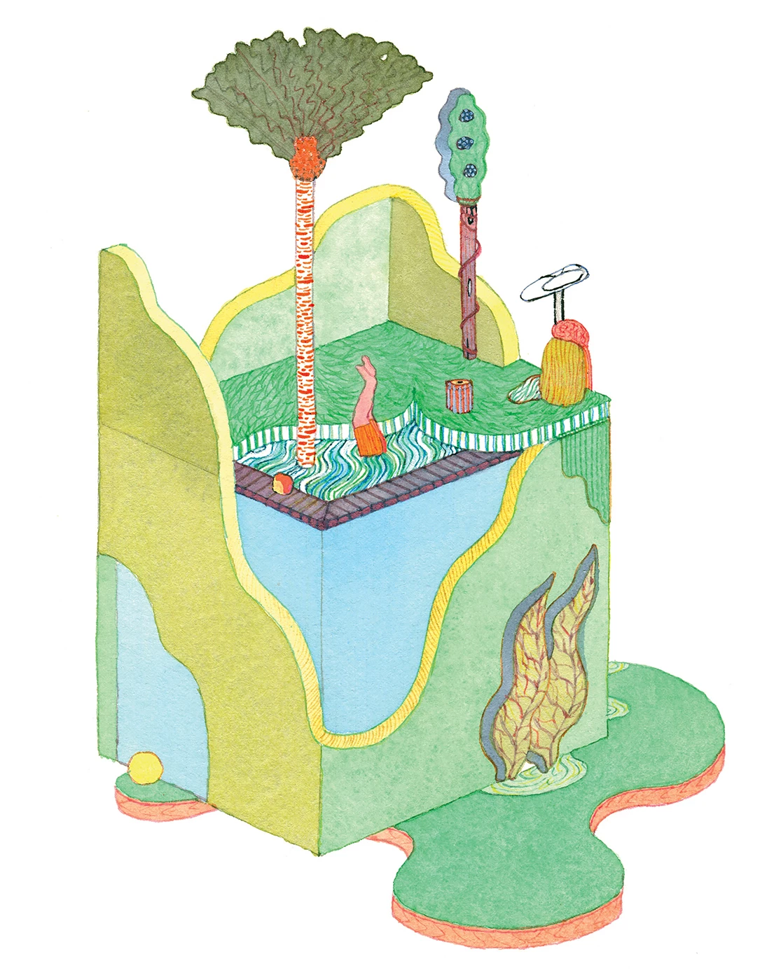 Laura Ancona crée des univers visuels vibrants où formes, couleurs et motifs se métamorphosent. Elle mêle nature, abstraction et éléments populaires dans un style carnavalesque et organique. Elle fait jouer dans son travail, les échelles, les transparences et les contrastes : animal et végétal, naturel et artificiel, abstraction et figuration.