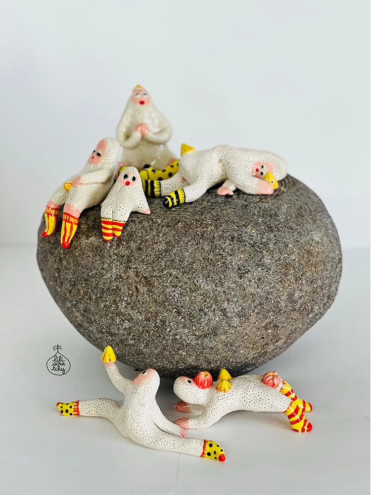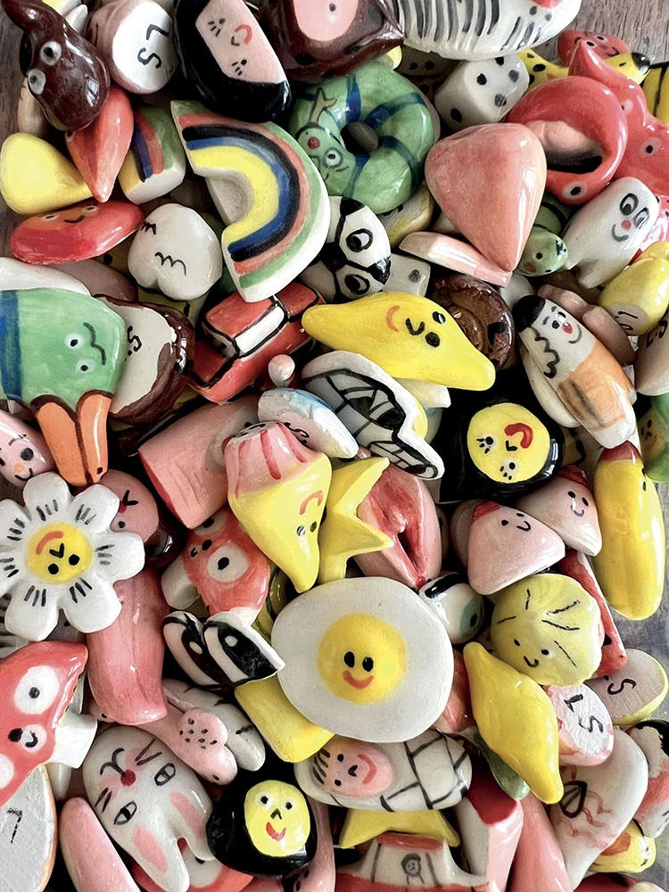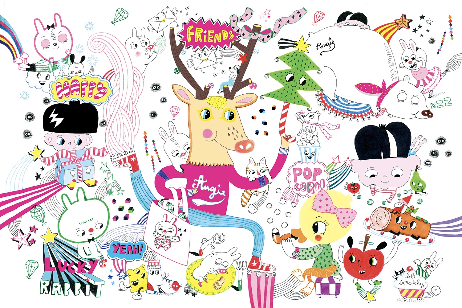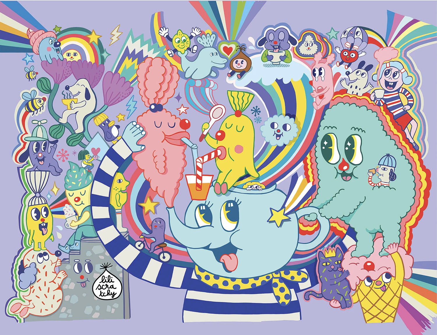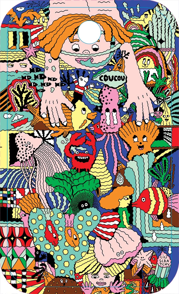 Lili Scratchy puise son inspiration dans l’art brut, le design japonais et l’univers manga. Son style naïf et pop, à la fois coloré et foisonnant, aborde avec légèreté des thématiques plus adultes. Elle décline son imaginaire cartoon sur papier, objets du quotidien, textiles, et aussi à travers la céramique. Son univers joyeux et singulier séduit L’Occitane ou Sushi Shop.